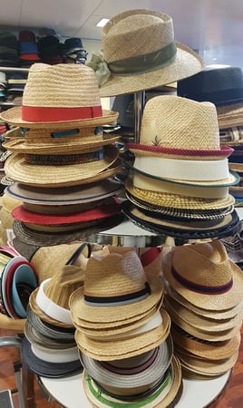 stehen im schmucken Laden zur Anprobe bereit. Hut ist nicht gleich Hut – Kopf ist nicht gleich Kopf.
